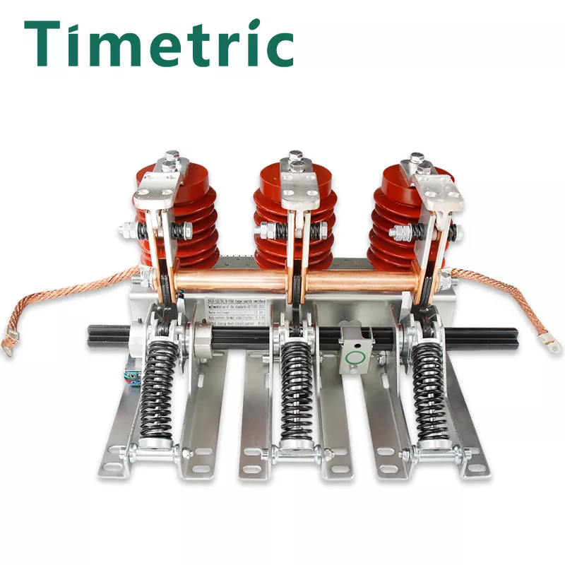 สวิตช์สนามต่อระยะห่างระยะห่างของระยะ 150 มม. JN15-12KV ที่ผลิตโดย TimeTric Electric ประกอบด้วยตัวยึดการประกอบมีดกราวด์การสัมผัสคงที่และเซ็นเซอร์ วงเล็บเชื่อมจากแผ่นเหล็กบาง ๆ หลักการในการดำเนินงานของมันคือกลไกการดำเนินงานขับเคลื่อนเพลาหลักในการหมุนโดยใช้พลังงานที่เก็บไว้ในสปริงการบีบอัดเพื่อให้ได้การเปิดและการปิดอย่างรวดเร็ว เมื่อปิดมีดกราวด์และการติดต่อแบบคงที่ได้รับการติดต่ออย่างน่าเชื่อถือผ่านฤดูใบไม้ผลิ ผลิตภัณฑ์มีโครงสร้างขนาดกะทัดรัดการทำงานที่มีน้ำหนักเบายืดหยุ่นการติดตั้งง่ายและความเสถียรทางความร้อนแบบไดนามิกที่แข็งแกร่ง ความเร็วในการเปิดและปิดของมันไม่ได้รับผลกระทบจากความเร็วในการใช้งานด้วยตนเอง เมื่อกลไกการทำงานปิดสวิตช์สายดินแรงบิดที่ทำหน้าที่เป็นเพลาหลักจะเอาชนะแรงบิดความต้านทานการขับแขนข้อเหวี่ยงเพื่อหมุนไปในทิศทางปิด สิ่งนี้ทำให้คันโยกปฏิบัติการบนมีดต่อสายดินผ่านจุดตายของสปริงอัดปล่อยพลังงานและปิดสวิตช์สายดินอย่างรวดเร็ว มีดกราวด์ของมีดที่ต่อสายดินได้รับการติดต่ออย่างแน่นหนาและได้รับการติดต่ออย่างมั่นคงกับหน้าแปลนของการสัมผัสแบบคงที่ผ่านสปริงการบีบอัด ในระหว่างการดำเนินการเปิดแรงบิดที่ใช้จะทำให้เพลาหลักเอาชนะแรงบิดหลักและแรงสปริงขับแขนข้อเหวี่ยงเพื่อหมุนไปในทิศทางเปิด สิ่งนี้ทำให้เกิดการบีบอัดมีดบีบอัดสปริงผ่านจุดตายทำให้กระบวนการจัดเก็บพลังงานเสร็จสิ้นและเตรียมการปิดครั้งต่อไป สวิตช์สายดินและความเร็วในการปิดเป็นอิสระจากความเร็วในการทำงานของผู้ปฏิบัติงาน